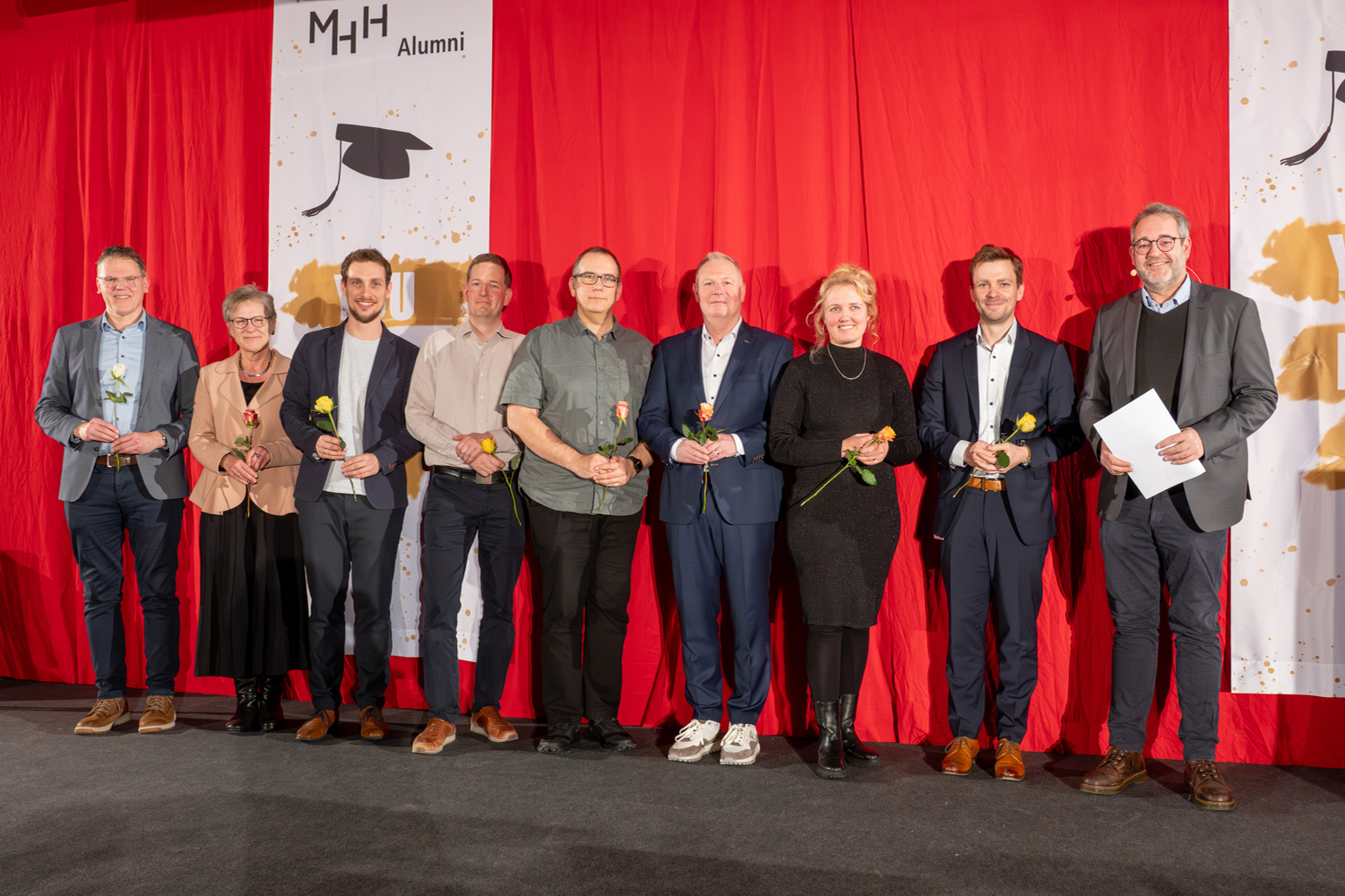 Das Studiendekanat der MHH nutzte den feierlichen Anlass der Examensfeier Humanmedizin, um wieder verdiente Dozentinnen und Dozenten im Modellstudiengang HannibaL für ihre besonders engagierte Lehre auszuzeichnen. Das Thema der diesjährigen Ausschreibung für den Jury-Lehrpreis für das Studienjahr 2024/25 lautete „Vielfalt innovativer Lehrkonzepte“. Über den ersten Platz verbunden mit einem Preisgeld in Höhe von 10.000 Euro freuen sich Dr. Vanessa Rigterink, Dr. Christoph Noll und Dr. Lucas Delventhal für das Wahlfach „Spezielle Anästhesiologie/Notfallmedizin: Sicherheit in schwierigen Situationen (HAINS-Woche)“. Der zweite Platz und damit ein Preisgeld in Höhe von 5.000 Euro geht an das hochschulübergreifende Projekt des Instituts für Allgemeinmedizin geneinsam mit der Hochschule Hannover „Interprofessionelle Zusammenarbeit in Palliative Care: gemeinsam lehren – voneinander lernen – Kompetenzen stärken“. Stellvertretend für das ganze Team nahmen PD Dr. Kambiz Afshar und Dr. Sven Schwabe die Auszeichnung entgegen. Zudem wurden weitere Lehrpreise für alle Studienjahre im Studiengang Humanmedizin verliehen.