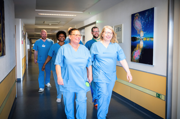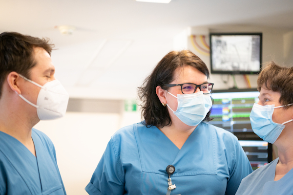 In intensive care, no two days are alike. There is no rigid daily routine; you actively help shape it. Your ideas are valued, and you are given the space to contribute them. You work in a strong, supportive team and set priorities for your patients together. The dedicated nursing team in the intensive care units consists of full-time and part-time staff. A high proportion of our colleagues have completed a two-year advanced training program in intensive care and anesthesia. Some nurses have additional training as respiratory therapists, wound care specialists, transplant coordinators, crisis counselors, and pain management specialists.