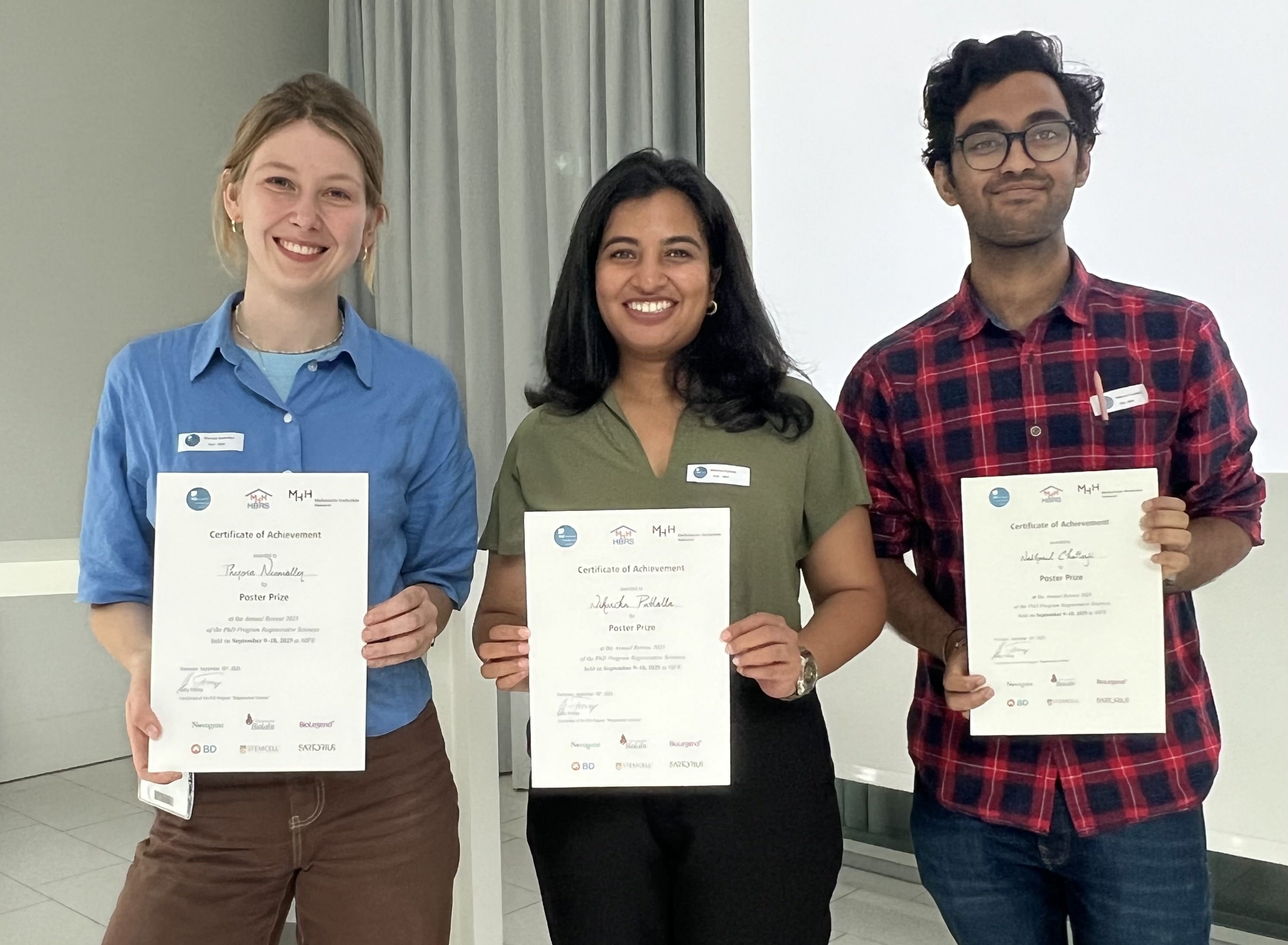 The Annual Retreat 2025 of PhD Program Regenerative-Sciences held on September 9-10 was a massive success thanks to the efforts and commitment of our organization team and our industry sponsors BD, Sartorius, BioLegend, Novogene, STEMCELL Technologies and New England Biolabs. Retreat 2025 Organization Team: Laurien Czichon (LEBAO), Suganya Annadurai (Transfusion Medicine & Transplant Engineering), Niveditha Varma (HTTG), Felix Kleemiß (LEBAO), Shannon Alyson McCallan (LEBAO)We congratulate the winners of Poster Prize: Nabhonil Chatterji (Department of Nuclear Medicine), Niharika Patlolla and Theresa Niemöller (LEBAO).