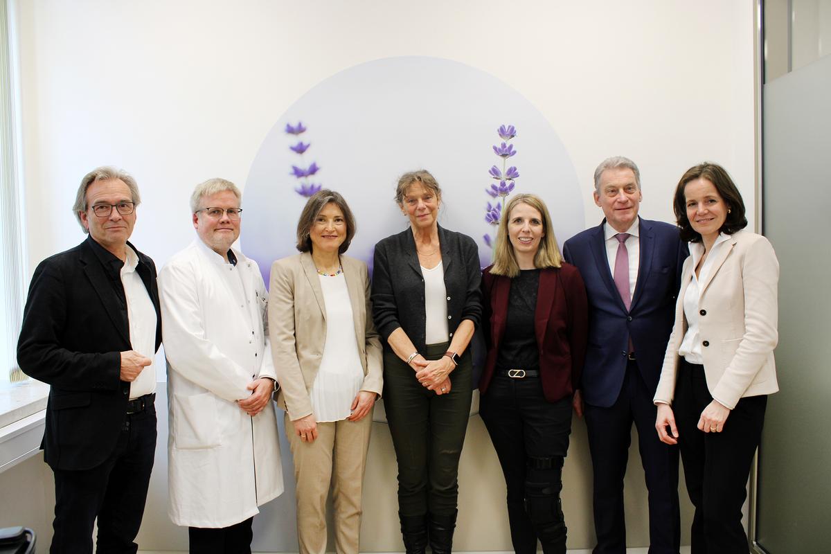 (from left) Advisory Board members Prof. Matthias Rostock and Prof. Hans Christiansen, Prof. Diana Steinmann (Director of the Klaus Bahlsen Center), MHH President Prof. Denise Hilfiker-Kleiner, PD Dr. Susanne Isfort (Managing Director of CCC Hannover), Dr. Jürgen Seja (Chairman of the Rut and Klaus Bahlsen Foundation) and Dr. Sabine Schopp (Managing Director of the Rut and Klaus Bahlsen Foundation). Copyright: Jana Illmer-Krüger/MHH