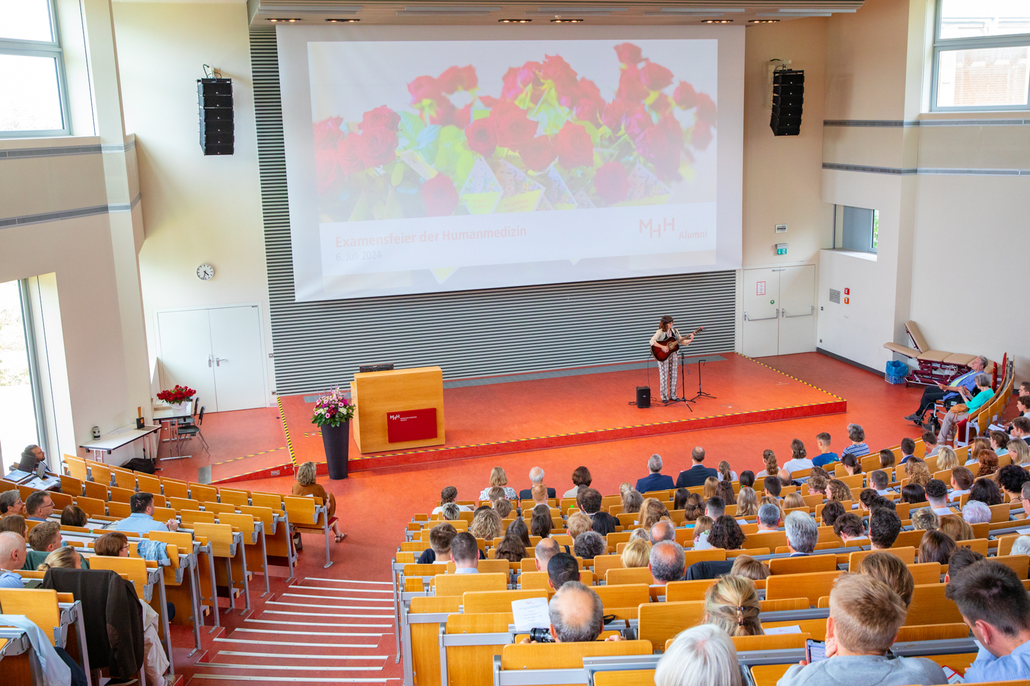 Am 6. Juli verabschiedete der MHH-Alumni e.V. die Absolventinnen und Absolventen der Humanmedizin. Über 300 Gäste versammelten sich zur Examensfeier in Hörsaal F der Medizinischen Hochschule Hannover.