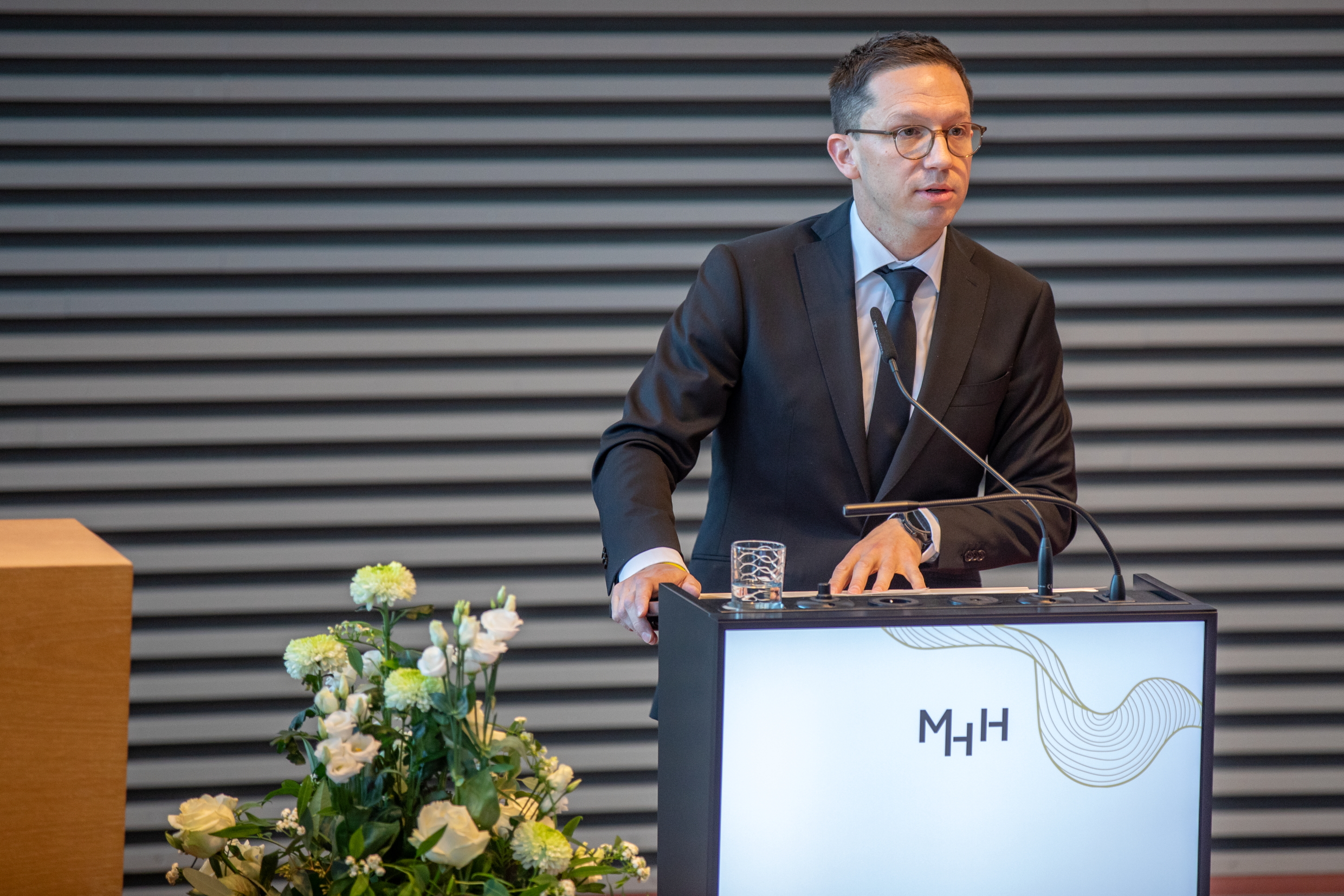 Zum Abschluss der Gedenkfeier setzten zwei besonders eindrucksvolle Redebeiträge emotionale und zugleich persönliche Akzente. Der ehemalige niedersächsische Ministerpräsident, Bundesminister und Vizekanzler Sigmar Gabriel würdigte das Wirken von Michael Manns. Dr. Johanna Rieder, die älteste Tochter von Michael Manns, bedankte sich mit bewegenden Worten im Namen der Familie für die große Anteilnahme und auch die Unterstützung und Begleitung ihres Vaters in unserer Klinik.