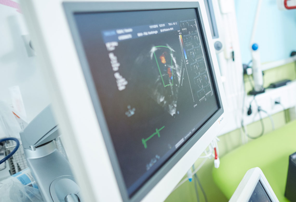 Die transthorakale Echokardiographie ist die Basis der Diagnose bei angeborenen Herzfehlern. Der Abteilung für Pädiatrische Kardiologie und Intensivmedizin stehen sämtliche echokardiographischen Techniken zur Verfügung (2-D-Mode, M-Mode, Doppler (PW-, CW-, Farbdoppler), Gewebedoppler, 3-D-Echokardiographie).