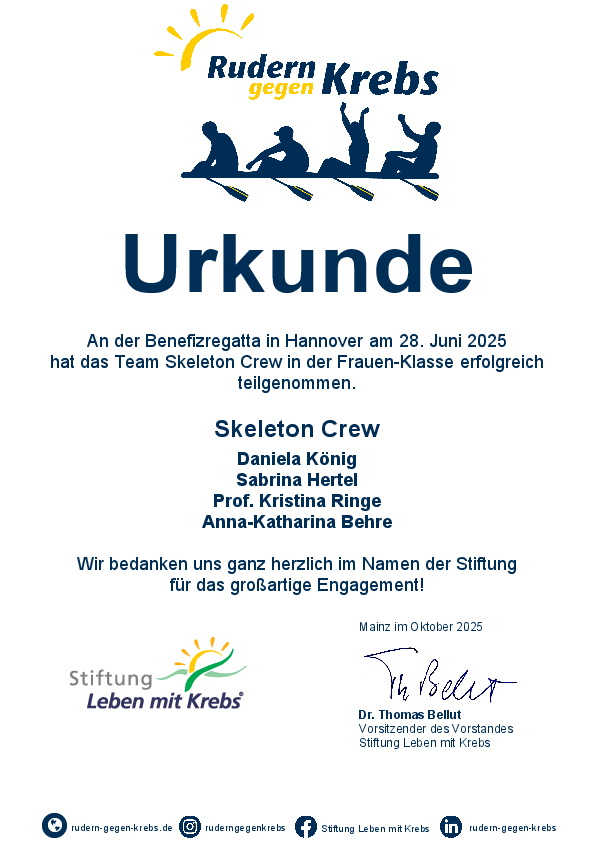 Das Team „Skeleton Crew“ hat am 28.06.25 mit viel Freude und Elan auf dem Maschsee an der Regatta „Rudern gegen Krebs“ teilgenommen…und immerhin Platz 2 im B-Finale erreicht !