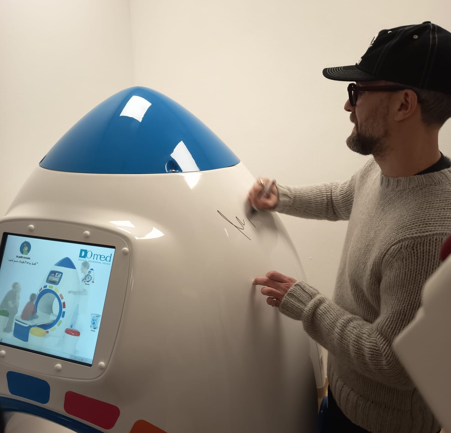 Die erste prominente Unterschrift ist bereits auf dem Simulations-MRT verewigt; der Sänger Mark Forster hat es bei seinem Besuch in der Kinderklinik am 30.01.2026 signiert