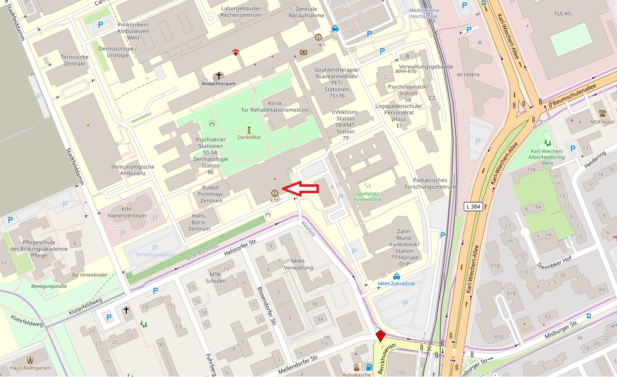 Die Klinik für Allgemin-, Viszeral- und Transplantationschirurgie befindet sich im Gebäude K11, zusammen mit der Frauenklinik.