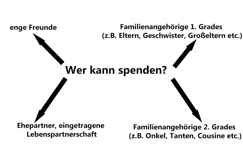 Nach der ersten Kontaktaufnahme mit uns durch Sie oder den behandelnden Arzt bitten wir Sie einen Anmelde-Bogen mit Kontaktdaten von Empfänger und möglichem Spender auszufüllen und uns erste Befunde bzgl. der Spendergesundheit zukommen zu lassen. Diesen Bogen können Sie gern elektronisch, telefonisch oder postalisch bei uns anfordern.