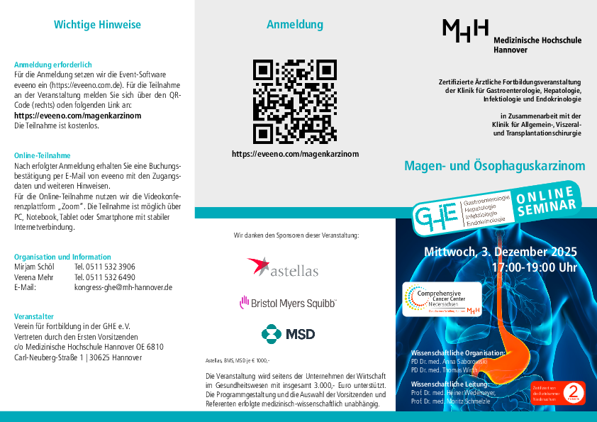Zertifizierte Ärztliche Fortbildungsveranstaltung der Klinik für Gastroenterologie, Hepatologie, Infektiologie und Endokrinologie in Zusammenarbeit mit der Klinik für Allgemein-, Viszeral- und Transplantationschirurgie und dem Institut für Pathologie in der MHH
