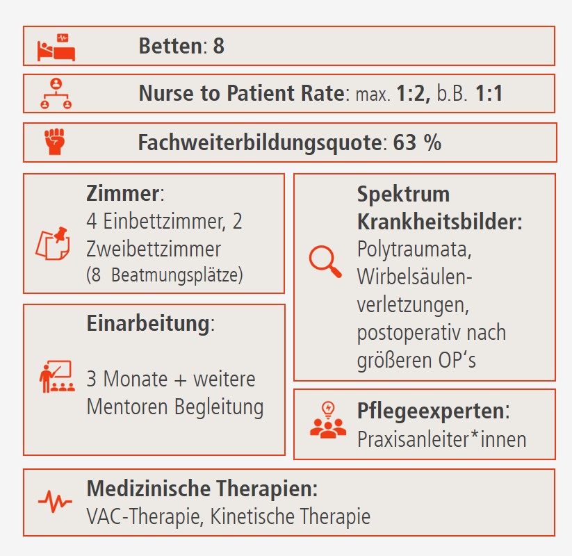 ... 473 Intensivfachpflegepersonen, davon 185 mit Fachweiterbildung Intensiv- und Anästhesiepflege, arbeiten in interdisziplinären Teams unter anderem mit Atmungstherapeut_innen, Transplantationsbeauftragten (TXB) und Wundexpert_innen zusammen. Außerdem betreuen die Intensivpflegenden zwei COVID-19-Stationen.