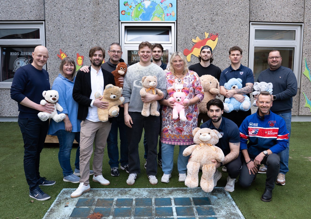 Beim Teddy-Toss-Spiel der EC Hannover Indians im Dezember wurde nicht nur sportlich gefeiert: Nach dem ersten Tor flogen zahlreiche Kuscheltiere aufs Eis – eine besondere Aktion, bei der Fans ihre Teddys für den guten Zweck spenden. Nun wurden die gesammelten Plüschtiere an die Spieloase der Kinderklinik übergeben und bringen dort Freude in den Klinikalltag kleiner Patient:innen. Zur Übergabe kamen mehrere Spieler der Mannschaft persönlich vorbei. Begleitet wurden sie von Dimitrij Herold und Christophe Daguerre, Vertreter des Unternehmens Rewe, das die Aktion zusätzlich unterstützte: Für jeden geworfenen Teddy spendete das Unternehmen 2 Euro an die Kinderklinik und verdoppelte den Betrag anschließend noch einmal. So kamen insgesamt 2.000 Euro zusammen. Auch das Fanprojekt des ECH beteiligte sich und steuerte weitere 400 Euro bei. Ein herzliches Dankeschön an den Verein, alle Fans und Unterstützer:innen, die dafür gesorgt haben, erkrankten Kindern Freude zu schenken.