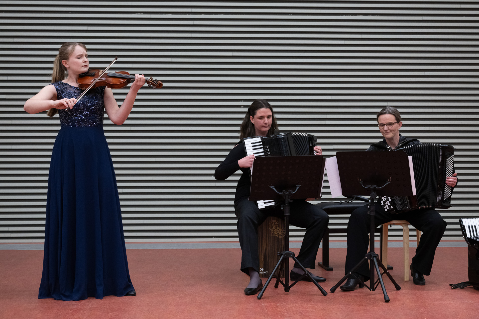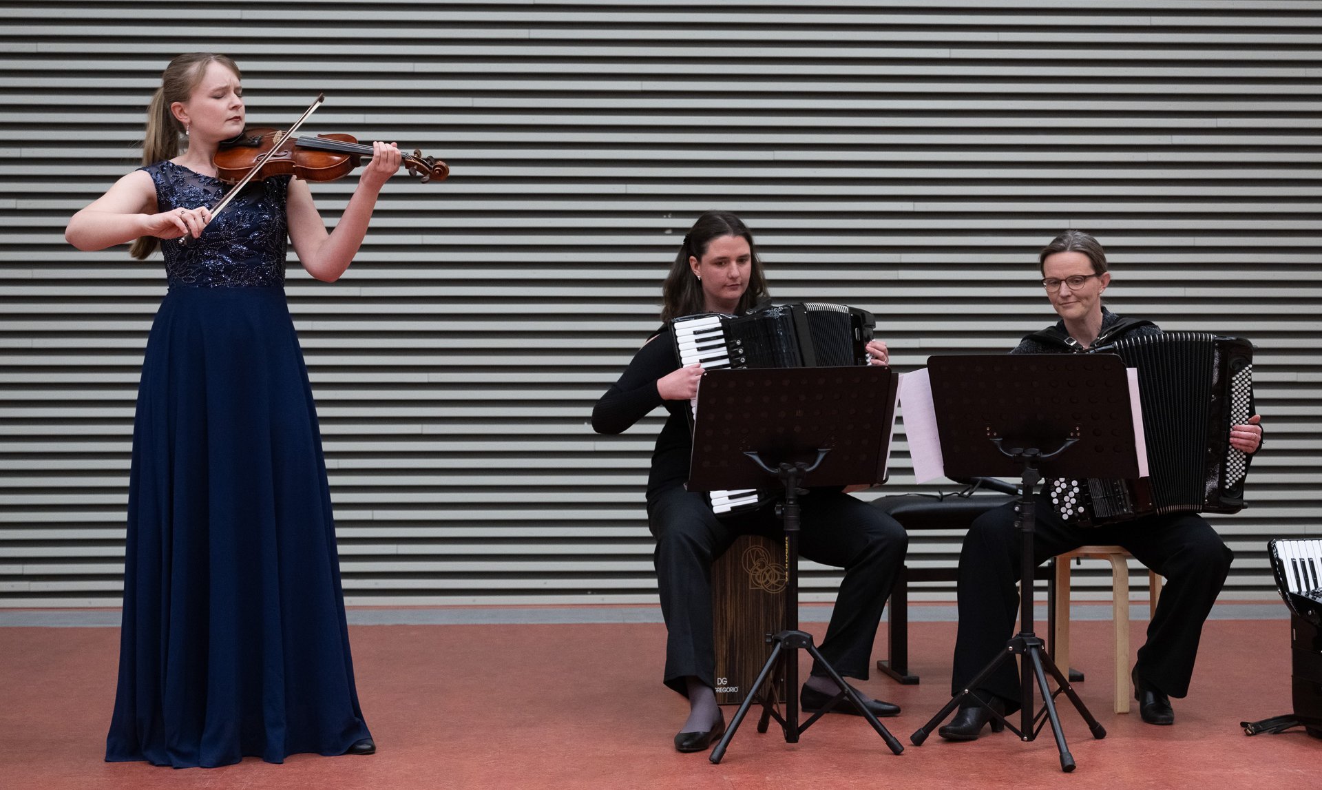 Rund 300 Spenderinnen und Spender sowie Mitglieder kamen der gemeinsamen Einladung der Förderstiftung MHH plus und der Gesellschaft der Freunde der MHH nach und nahmen am diesjährigen Frühlingskonzert am 10. April 2026 teil. Für besondere Begeisterung sorgten diesmal drei Schwestern mit einer außergewöhnlichen Klangsymbiose aus Violine und Akkordeon.
