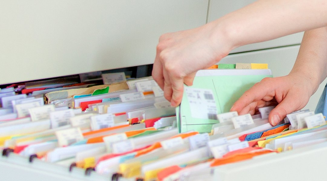 Das Symbolfoto zeigt Akten in einem Register. Quelle „Karin Kaiser“.
