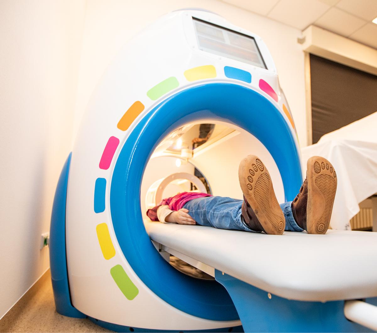 In der Kinderklinik werden pro Jahr mehr als 1.000 MRT-Untersuchungen vorgenommen. Mit der Methode können ohne Röntgenstrahlen hochauflösende Schnittbilder von weichen Geweben wie Organen, Muskeln, Nerven und Gefäßen erstellt werden. „MRT kommt beispielsweise nach Verletzungen von Gelenken, bei entzündlichen Veränderungen sowie bei onkologischen Fragestellungen zum Einsatz“, erklärt Prof. Dr. Diane Renz, Leiterin der Kinderradiologie, ein Bereich des Instituts für Diagnostische und Interventionelle Radiologie. Die MRT-Untersuchungen dauern durchschnittlich 30 bis 45 Minuten. Für die Kinder sind das lange Stillliegen, die lauten Geräusche und die Enge in der Anlage eine große Herausforderung. Nicht alle schaffen das. Wenn der Vorgang abgebrochen werden muss, steht eine erneute Untersuchung an, dann allerdings in Narkose oder mit Beruhigungsmitteln. „Darauf würden wir natürlich lieber verzichten, denn eine Narkose ist mit einem deutlich höheren Aufwand verbunden und birgt auch durchaus Risiken“, sagt Professorin Renz. Die Kinderradiologin freut sich sehr, dass es mit dem MRT-Simulator nun eine Möglichkeit gibt, die Kinder optimal auf die Untersuchung vorzubereiten. So werden Doppeluntersuchungen vermieden und die Aufnahmen haben eine bessere Bildqualität, weil es zu weniger Bewegungsartefakten wie Verwacklungen oder Verwischungen kommt.