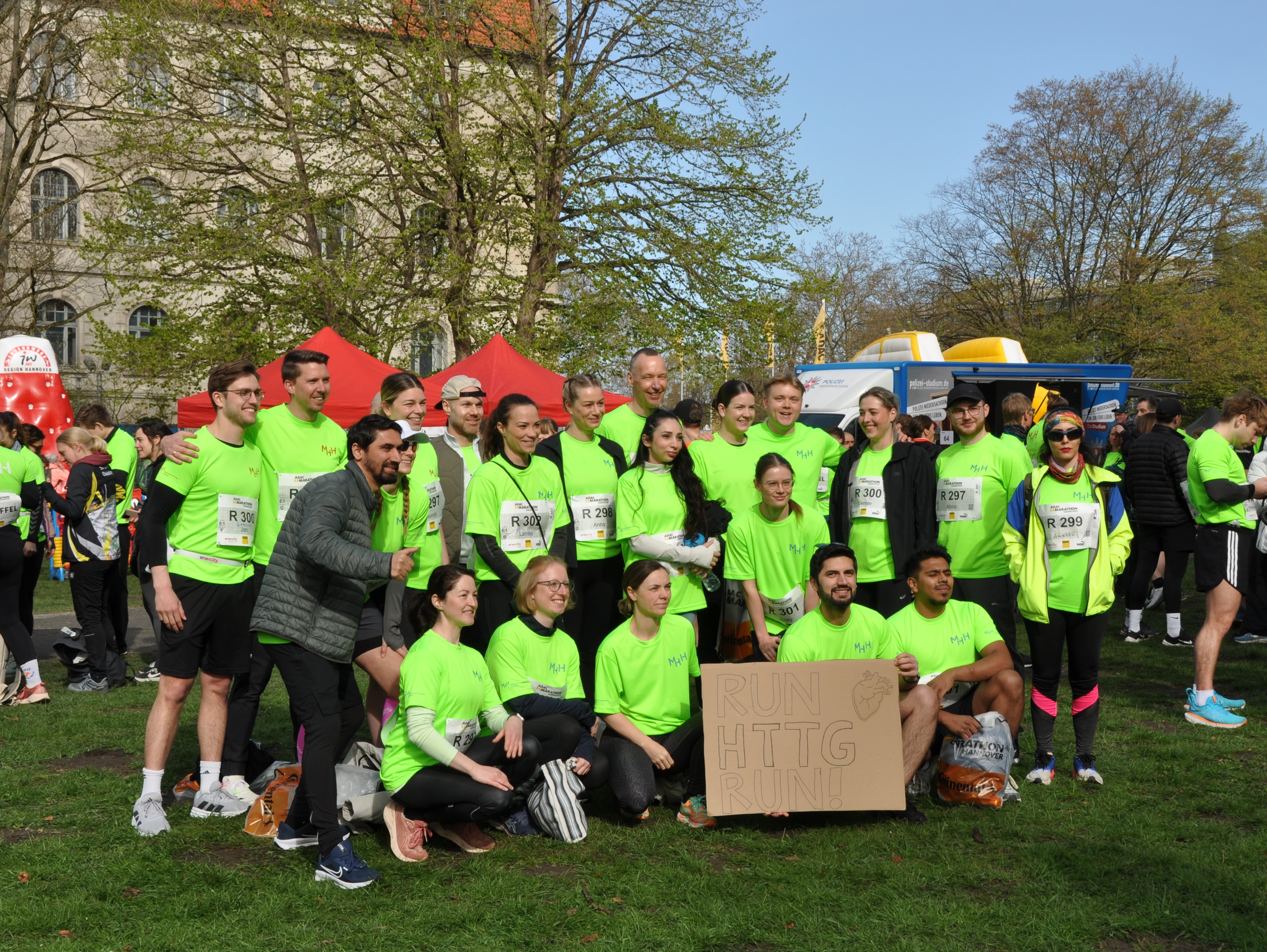 Ob auf den einzelnen Etappen oder beim gemeinsamen Zieleinlauf vor dem Neuen Rathaus: In ihren leuchtend grünen MHH-Shirts waren die MHH-Mitarbeitenden entlang der Strecke weithin sichtbar. Wie in den vorangegangenen Jahren wurden die Laufshirts von der Förderstiftung MHH plus gesponsert.