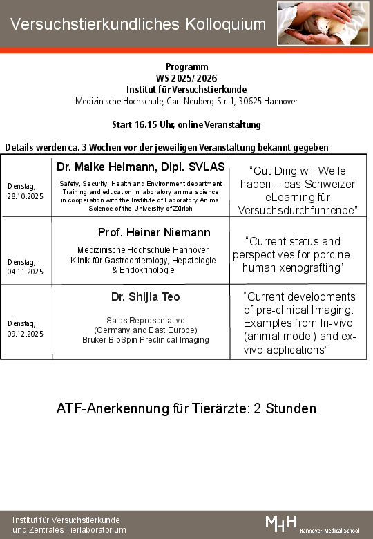- Forschung, insbesondere durch die Verknüpfung von Grundlagenforschung mit versuchstierkundlichen Themen.